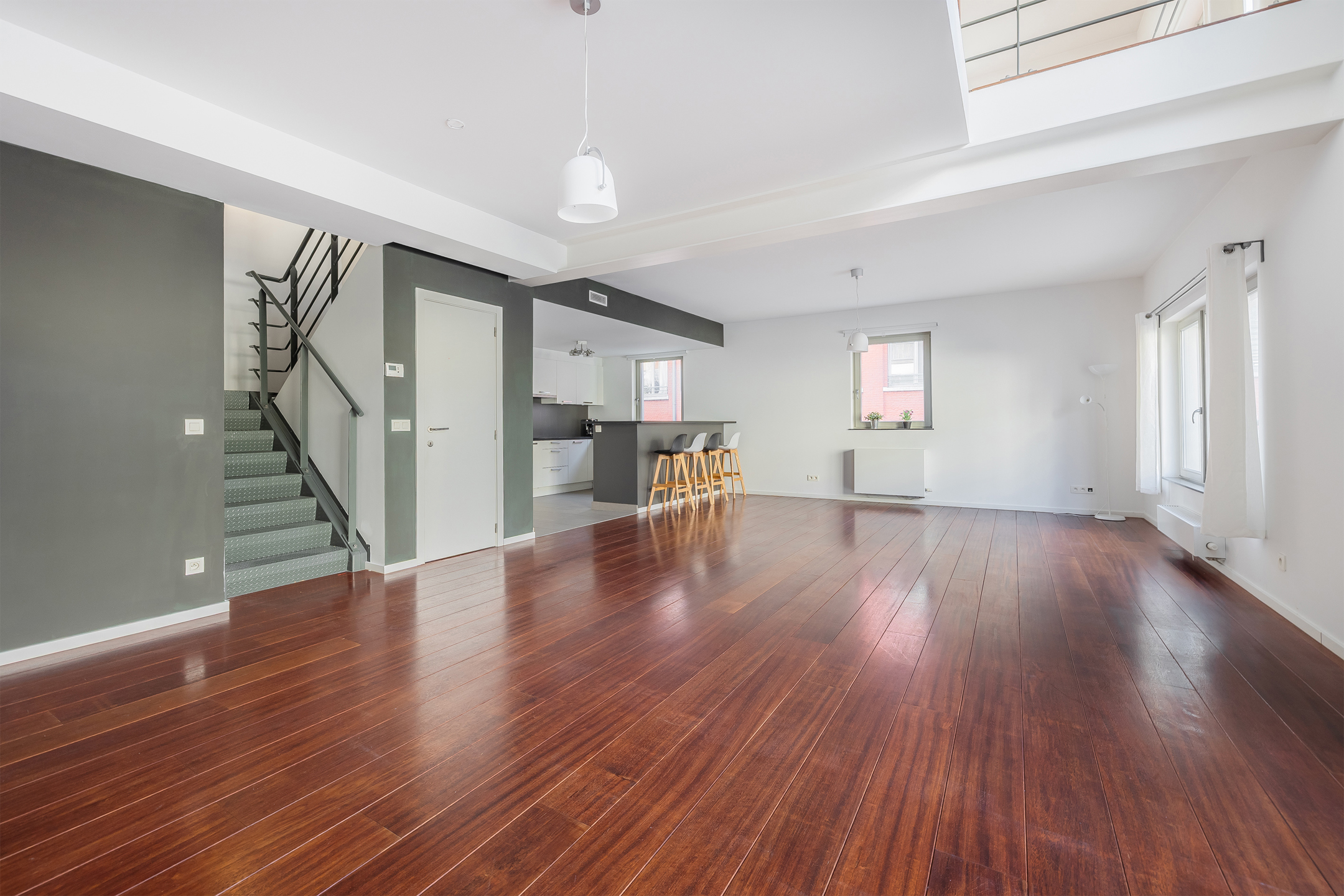 Located in Forest, near Wiels, in a building that was completely and tastefully renovated a few years ago, in the legendary former Bata shoe factory, Rêvimmo Brussels proposes a superb duplex flat of 170m2 bruto with 2 bedrooms and a superb terrace of 50m2. As soon as you enter the building, you're in another world. The magnificent art deco façade gives way to a splendid, modern and spacious complex. The flat comprises a hall with wc, a vast, light-filled 64m2 living room opening onto a fully-equipped open-plan kitchen. A beautiful metal staircase leads to the first floor with a beautiful multi-purpose area partially overlooking the living room, two large bedrooms (21m2 and 13.5m2), one with a bathroom and the other with shower room. Separate WC. The staircase leads one level up to a large private terrace of 50m2. Electricity compliant. Current EPB E+. Finished to a high standard. The apartment also includes a cellar. 2 parking spaces available for 40.000€ each.Charges of €624 including communal areas (maintenance, lift, caretaker, etc.) and private heating and water charges. A magnificent duplex to discover. Close to all amenities, shops, schools, public transport, park and station. For further information & visits 02/217.00.32 - brussels@revimmo.be - www.revimmo.be