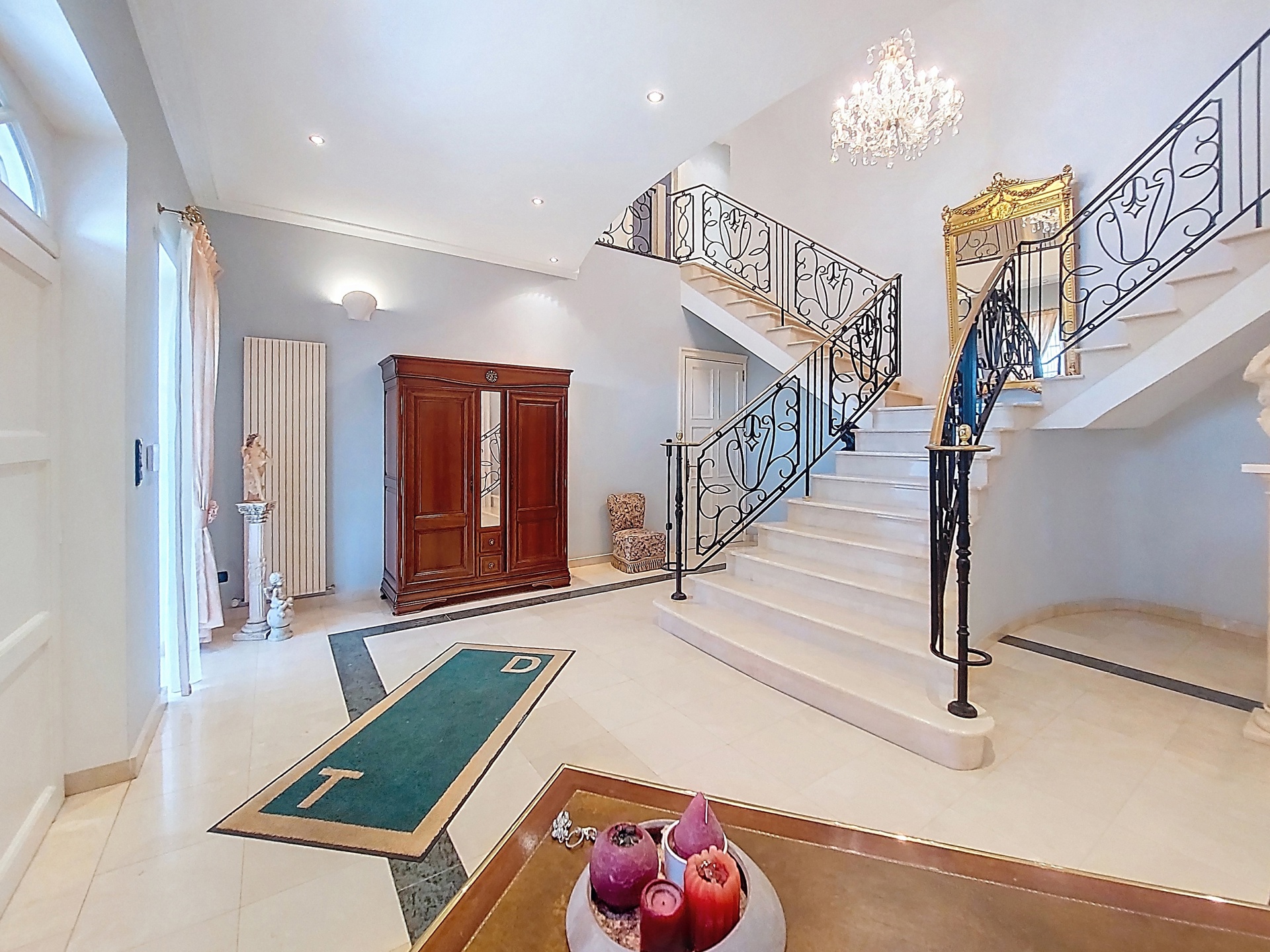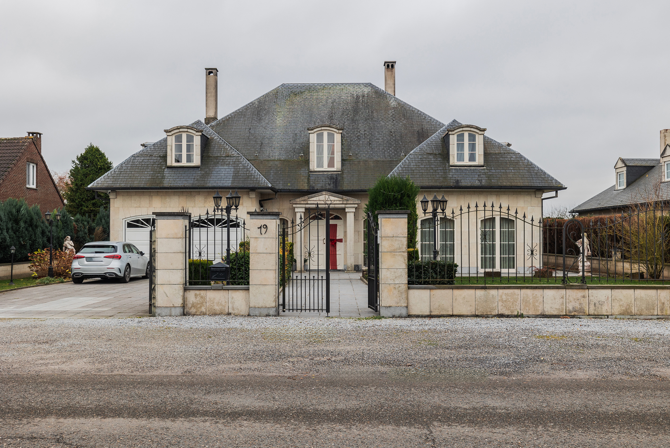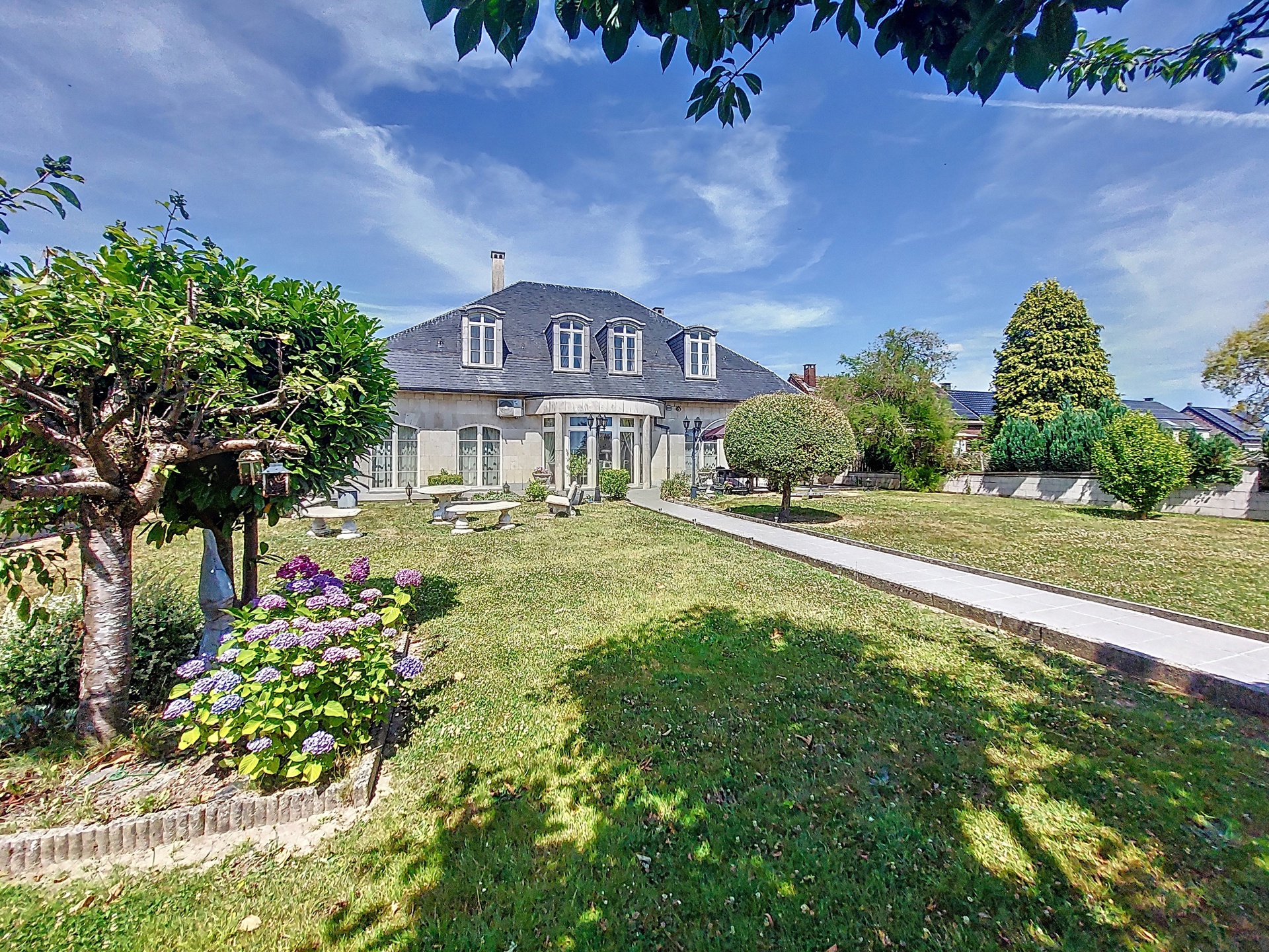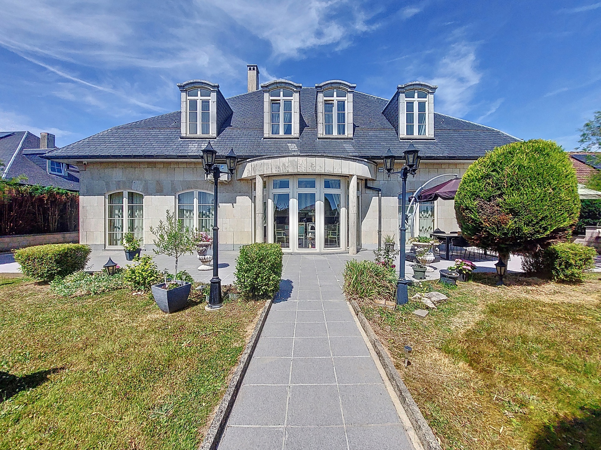 Discover this exceptional villa, which combines elegance and comfort. Upon entering you will be welcomed by a majestic hall, decorated with a double natural stone spiral staircase. The living room of 60m ² is equipped with air conditioning and a fireplace cassette, ideal for cozy moments in any season. You will also find a separate office space and a large, fully equipped Siematic kitchen, which is bathed in natural light thanks to its southwestern orientation. On this floor there is also a laundry room, a bathroom with a bath, shower, toilet, bidet and double sink, as well as a separate toilet room. The double garage has two electric doors. The floor consists of 5 bedrooms. The upstairs bathroom has a bath, toilet, bidet and double sink. This villa is built with noble materials, including natural stone covering the floors and a facade of white Syracuse stone, while the roof is covered with natural slates. The house has central heating on fuel oil and has excellent insulation, both on the roof and in the facade. A two-tone alarm system and security cameras ensure your safety. The garden houses an outbuilding equipped with electricity, running water and a pizza oven for relaxing moments with the family. Don't miss this unique opportunity to purchase an exceptional property. For more information, please contact us! Offer from 990,000 €