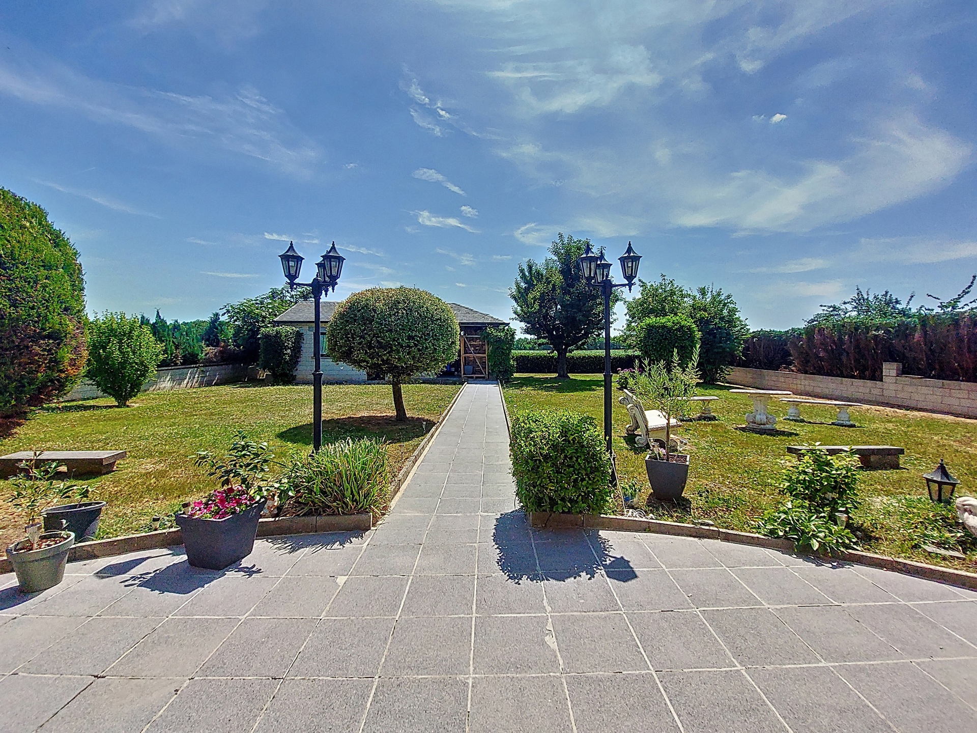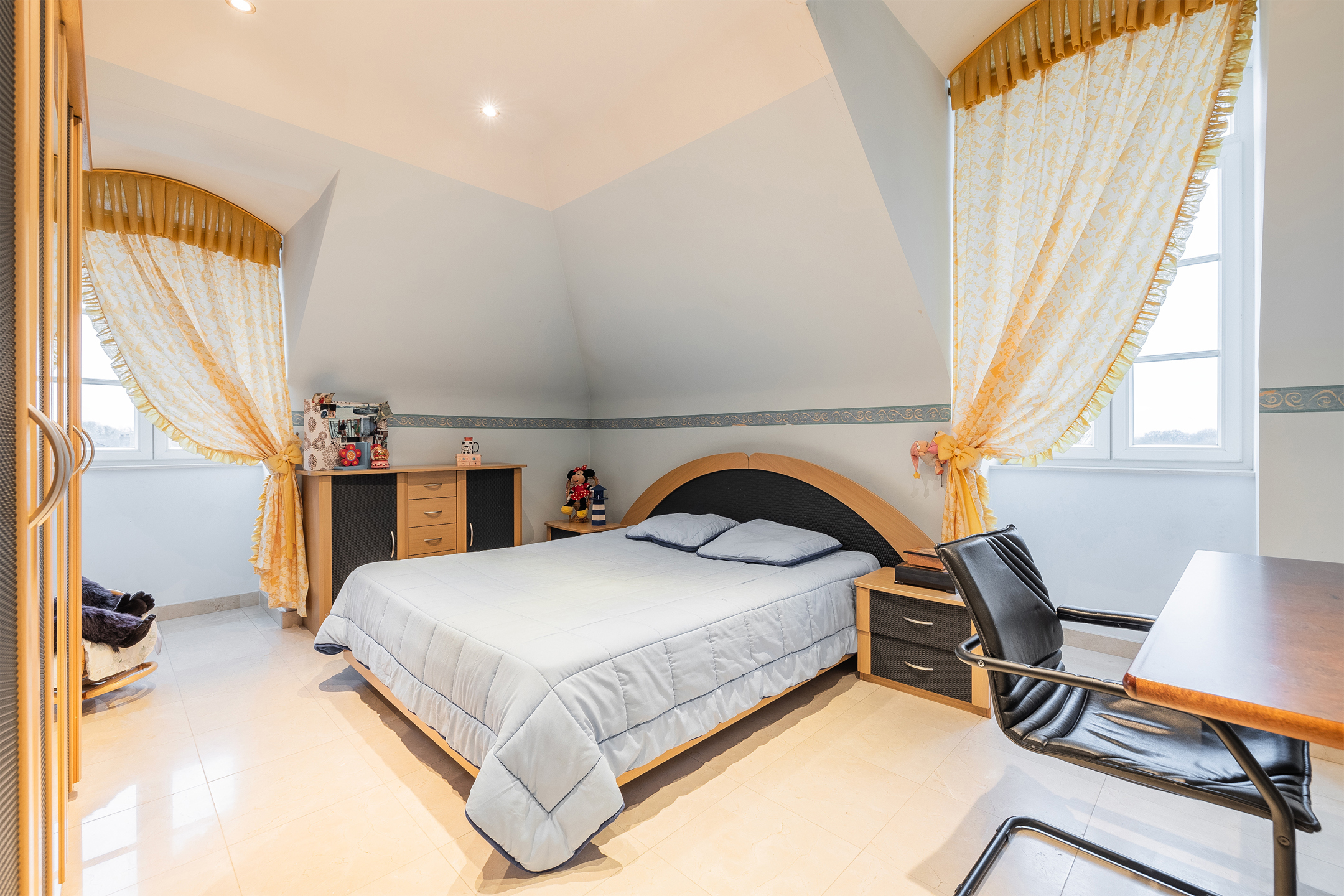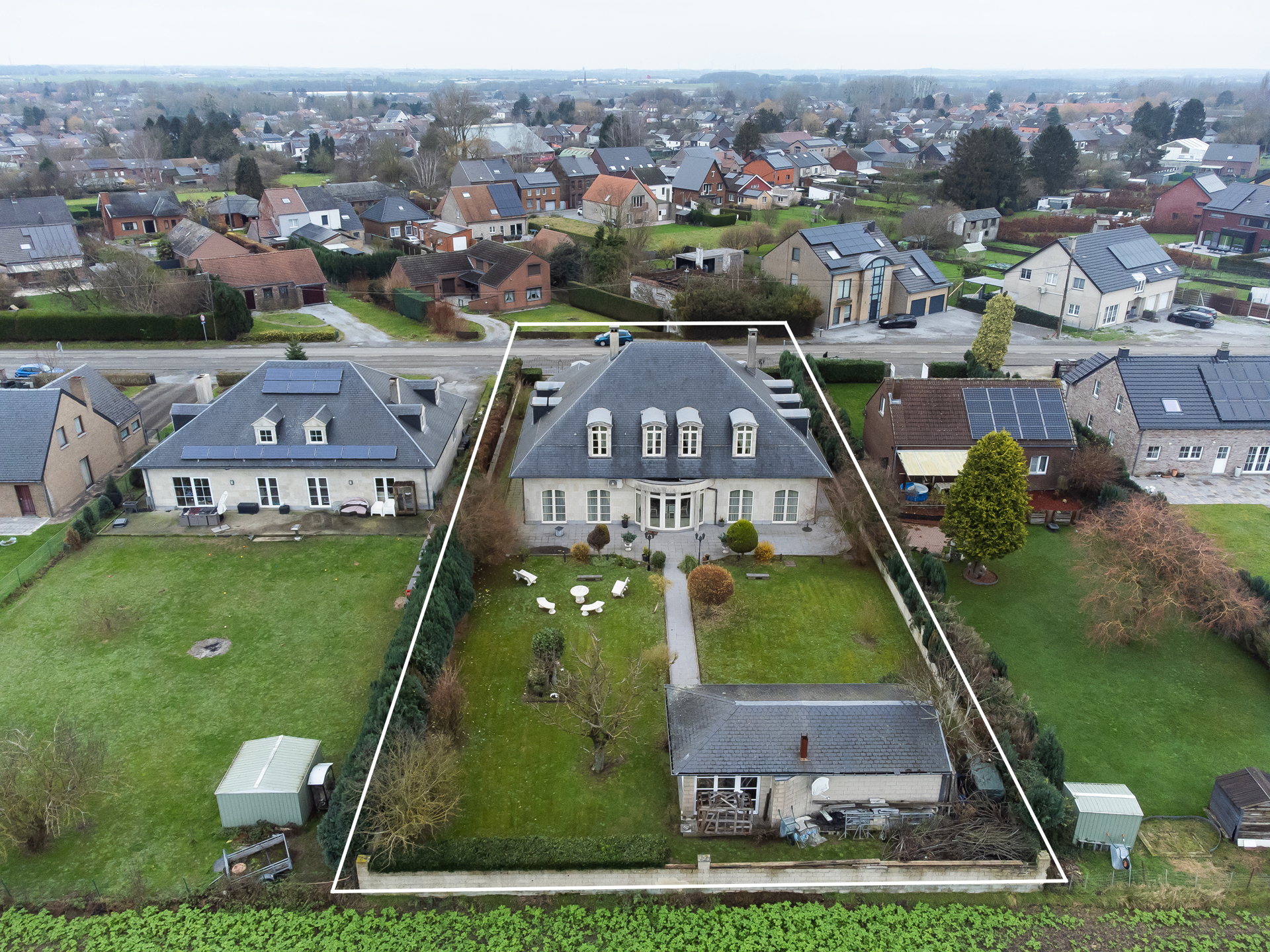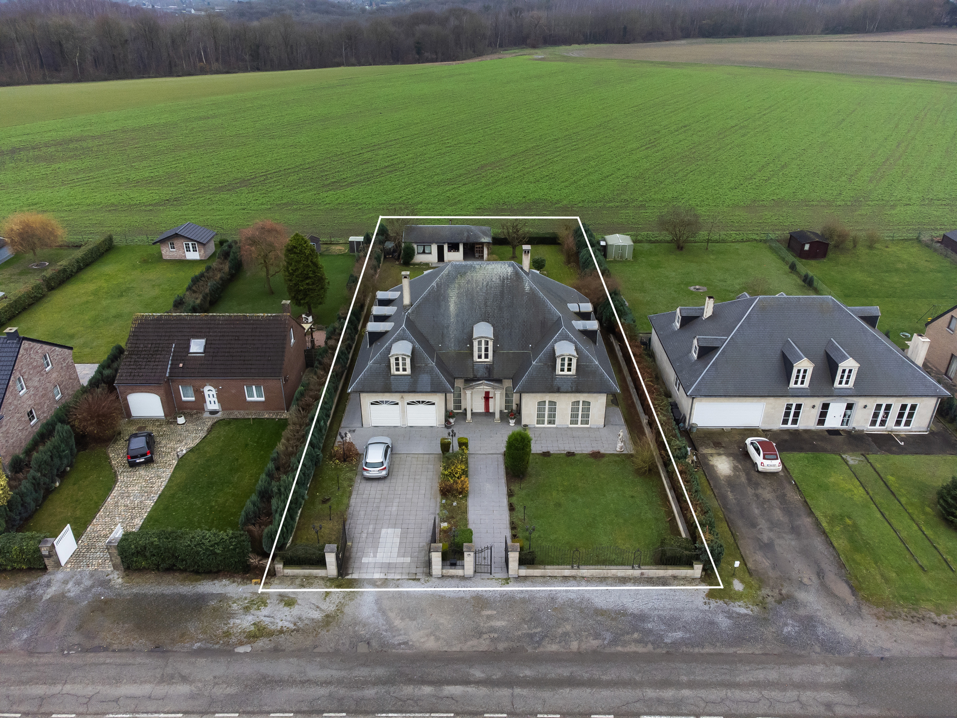 Discover this exceptional villa, which combines elegance and comfort. Upon entering you will be welcomed by a majestic hall, decorated with a double natural stone spiral staircase. The living room of 60m ² is equipped with air conditioning and a fireplace cassette, ideal for cozy moments in any season. You will also find a separate office space and a large, fully equipped Siematic kitchen, which is bathed in natural light thanks to its southwestern orientation. On this floor there is also a laundry room, a bathroom with a bath, shower, toilet, bidet and double sink, as well as a separate toilet room. The double garage has two electric doors. The floor consists of 5 bedrooms. The upstairs bathroom has a bath, toilet, bidet and double sink. This villa is built with noble materials, including natural stone covering the floors and a facade of white Syracuse stone, while the roof is covered with natural slates. The house has central heating on fuel oil and has excellent insulation, both on the roof and in the facade. A two-tone alarm system and security cameras ensure your safety. The garden houses an outbuilding equipped with electricity, running water and a pizza oven for relaxing moments with the family. Don't miss this unique opportunity to purchase an exceptional property. For more information, please contact us! Offer from 990,000 €