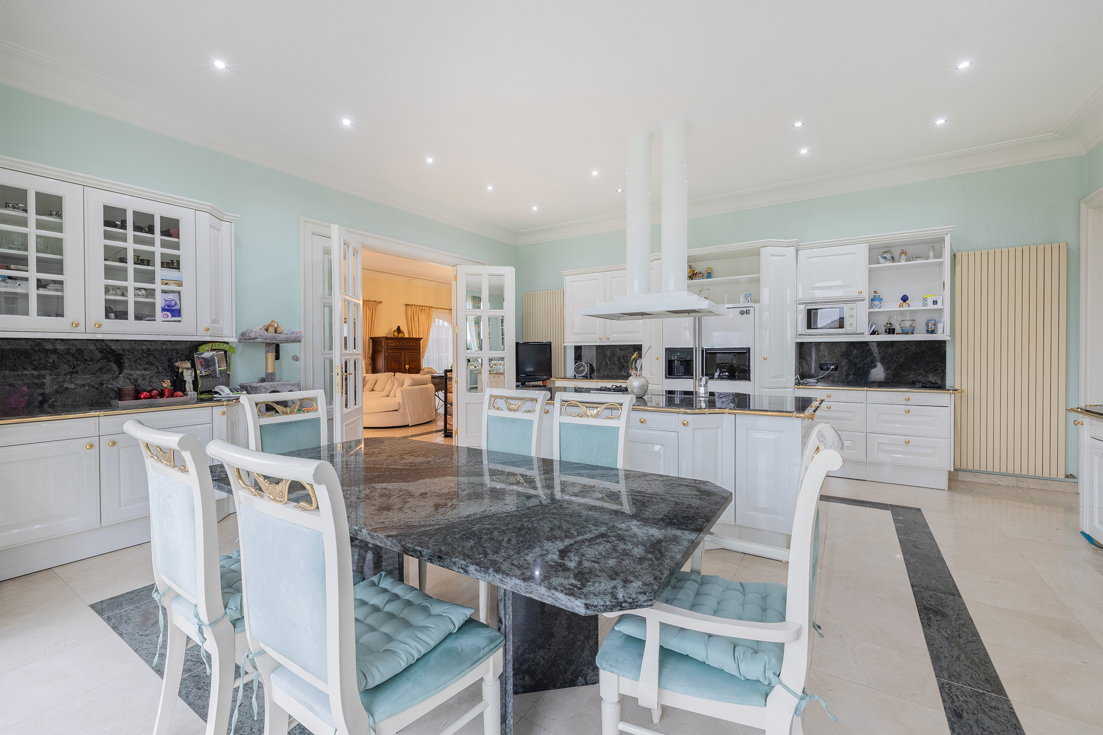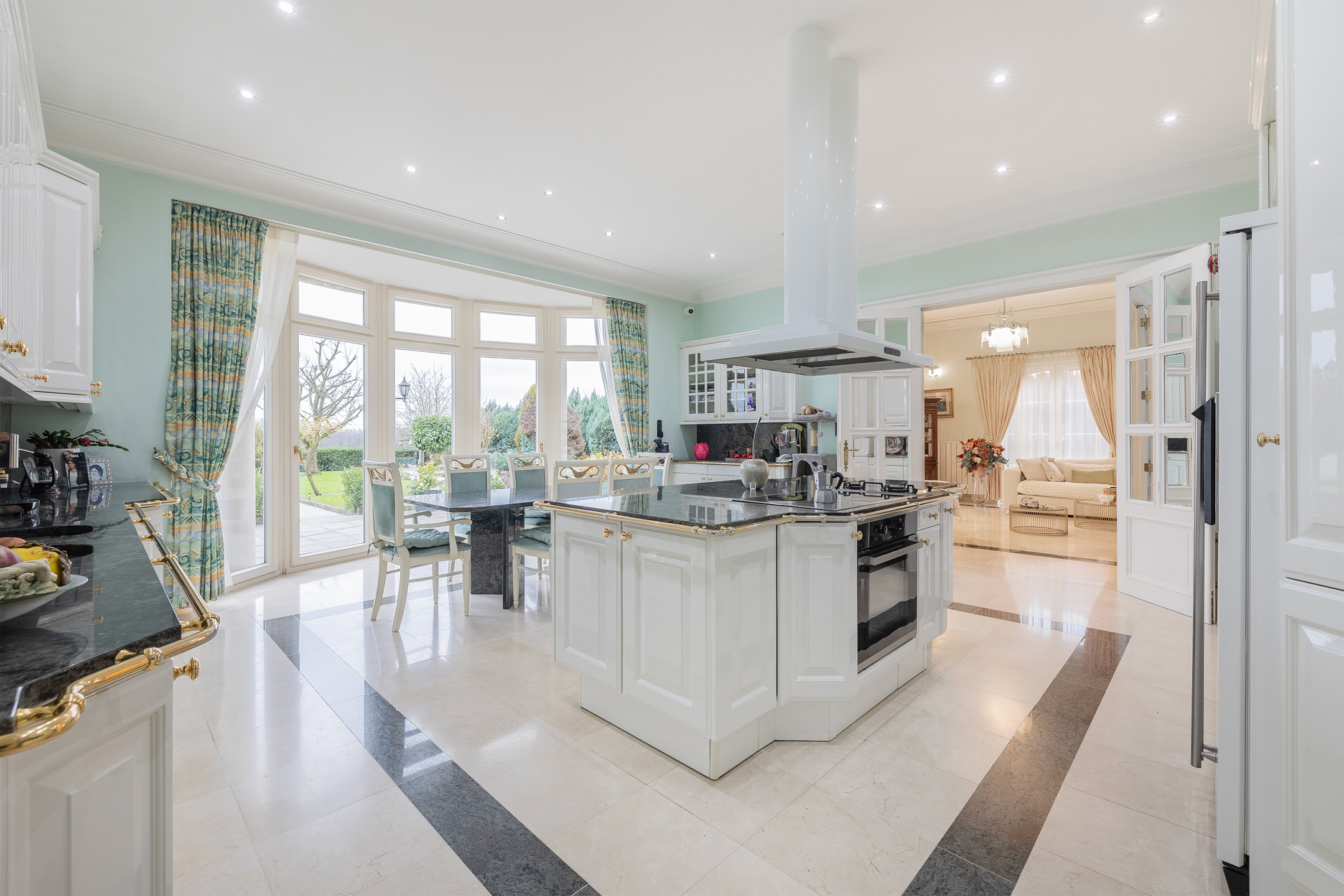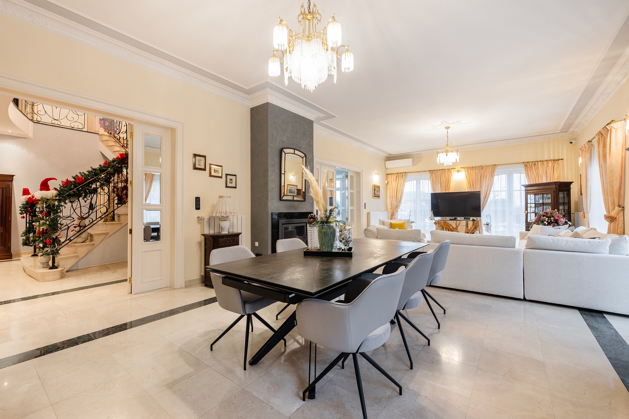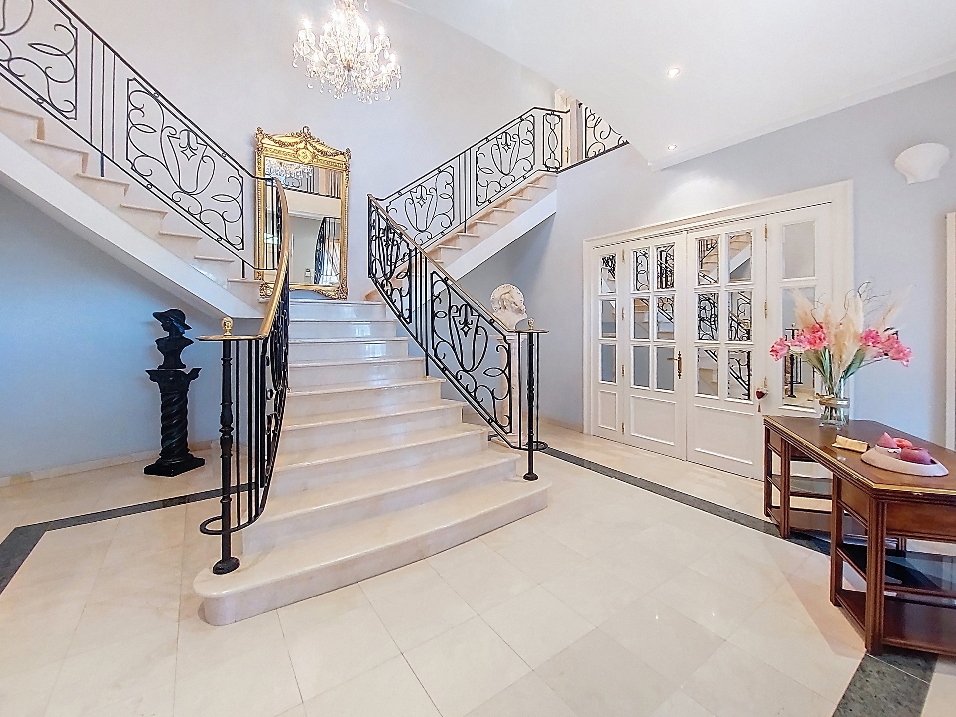 Discover this exceptional villa, which combines elegance and comfort. Upon entering you will be welcomed by a majestic hall, decorated with a double natural stone spiral staircase. The living room of 60m ² is equipped with air conditioning and a fireplace cassette, ideal for cozy moments in any season. You will also find a separate office space and a large, fully equipped Siematic kitchen, which is bathed in natural light thanks to its southwestern orientation. On this floor there is also a laundry room, a bathroom with a bath, shower, toilet, bidet and double sink, as well as a separate toilet room. The double garage has two electric doors. The floor consists of 5 bedrooms. The upstairs bathroom has a bath, toilet, bidet and double sink. This villa is built with noble materials, including natural stone covering the floors and a facade of white Syracuse stone, while the roof is covered with natural slates. The house has central heating on fuel oil and has excellent insulation, both on the roof and in the facade. A two-tone alarm system and security cameras ensure your safety. The garden houses an outbuilding equipped with electricity, running water and a pizza oven for relaxing moments with the family. Don't miss this unique opportunity to purchase an exceptional property. For more information, please contact us! Offer from 990,000 €