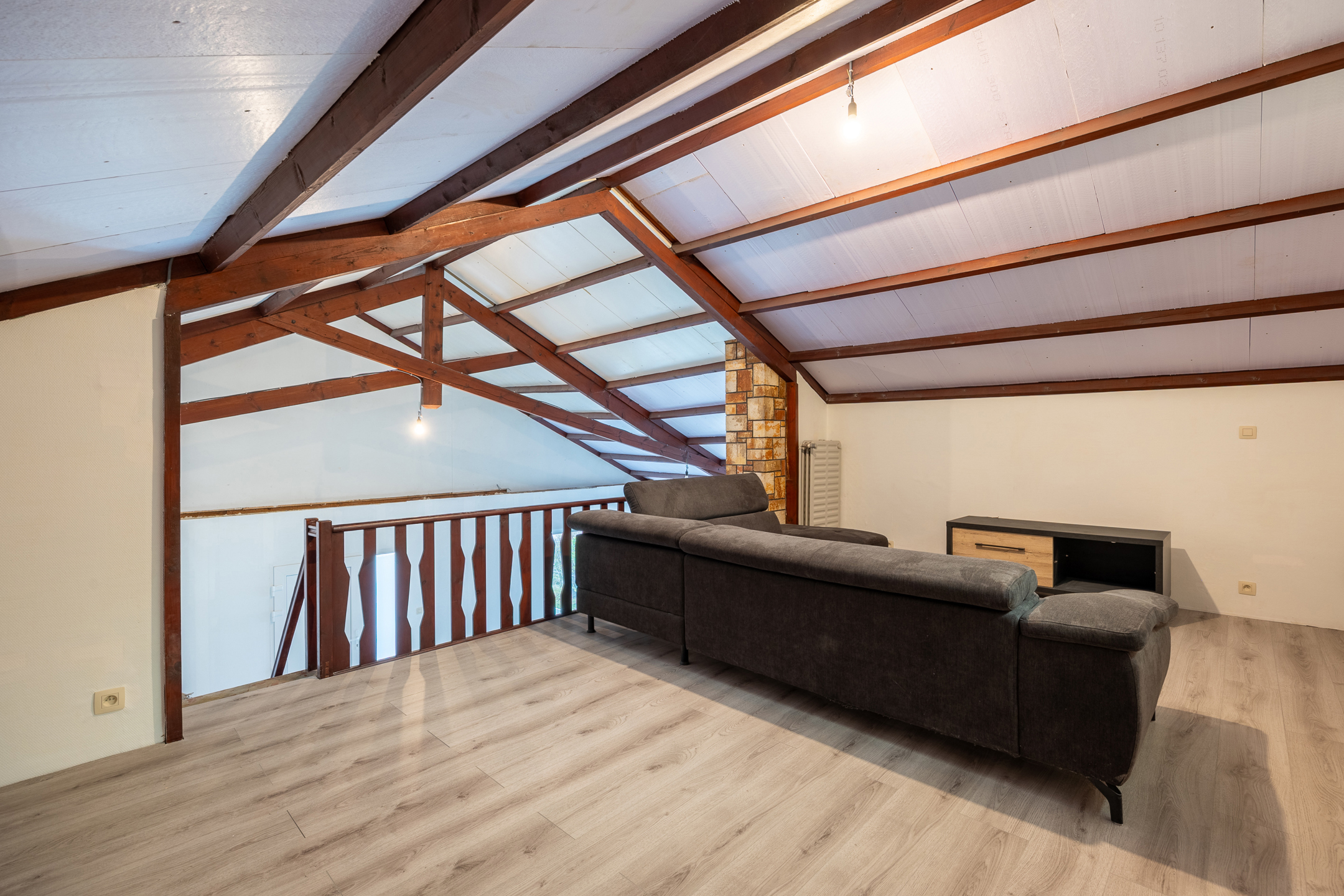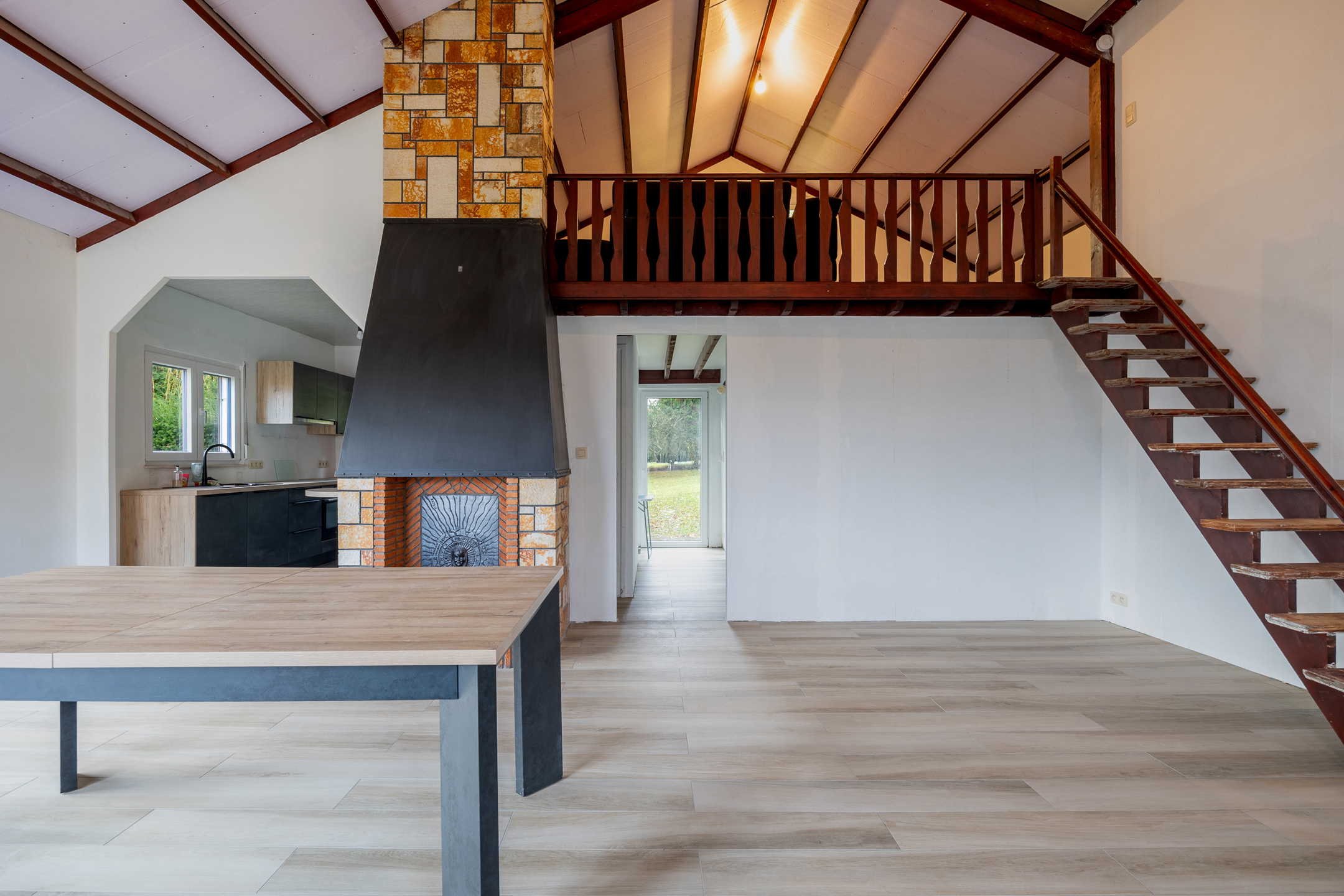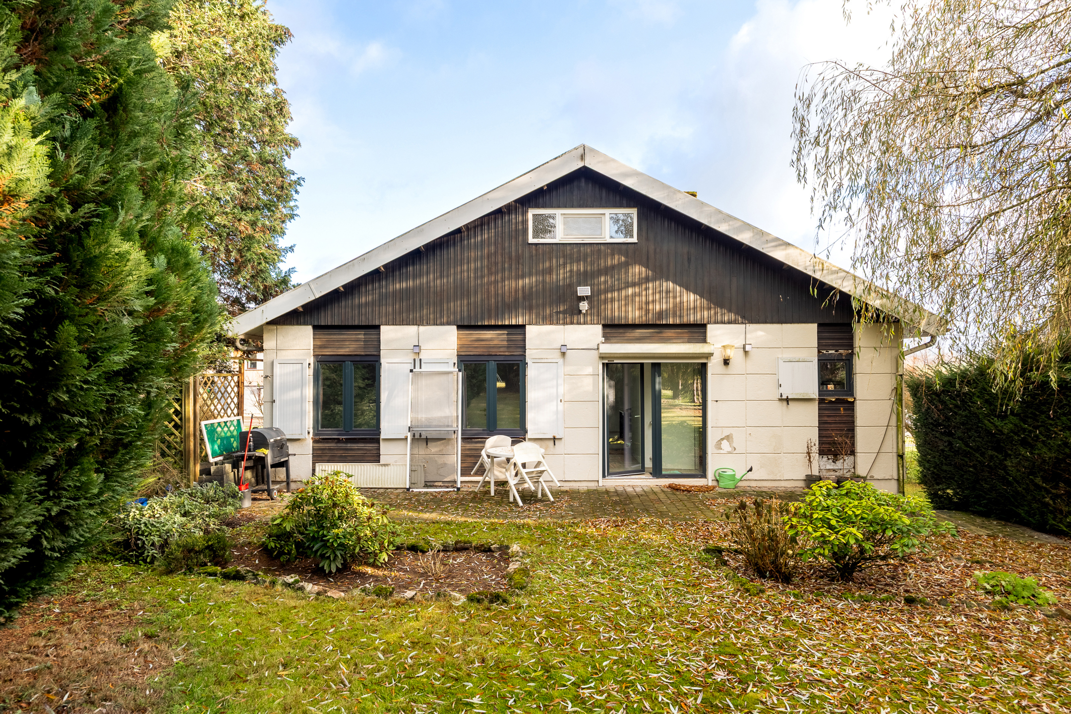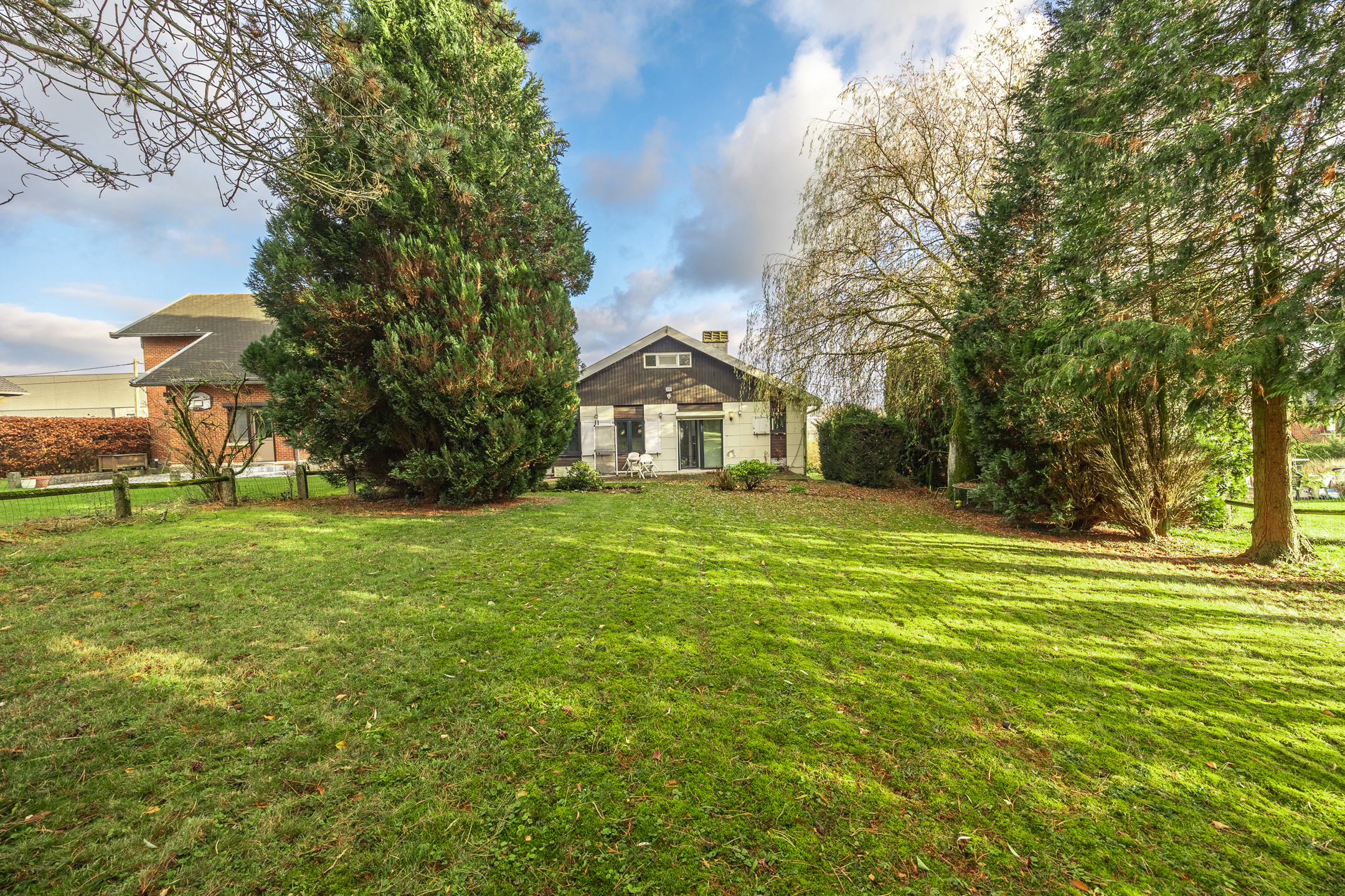 Charming single-story villa located on 11 acres 69 of land with a magnificent wooded garden, comprising a bright dining room with a working fireplace and a mezzanine that can be used as a living room or bedroom, a new fully equipped Ixina kitchen with Zanussi appliances (oven, hood, ceramic hob, fridge and freezer, dishwasher), a hallway leading to two bedrooms with Quick-Step flooring and a bathroom in need of renovation, a ventilated crawl space, sound cellars with laundry room, a garage, a 30 m² west-facing terrace, and benefiting from high-quality technical features such as new electrical wiring with a compliant report, imitation parquet flooring in the living room and kitchen, Schüco double-glazed windows, an oil-fired boiler with a 2,500 L underground tank, a smart electricity meter, and electric shutters on the side. Make an offer starting at €259,000. This is a real gem for a couple looking for space and comfort. Commission of 1.81% including VAT payable by the buyer. The property will be vacant upon completion. For more information or to arrange a viewing, please contact us at 071/11.56.50 or via charleroi@revimmo.be.