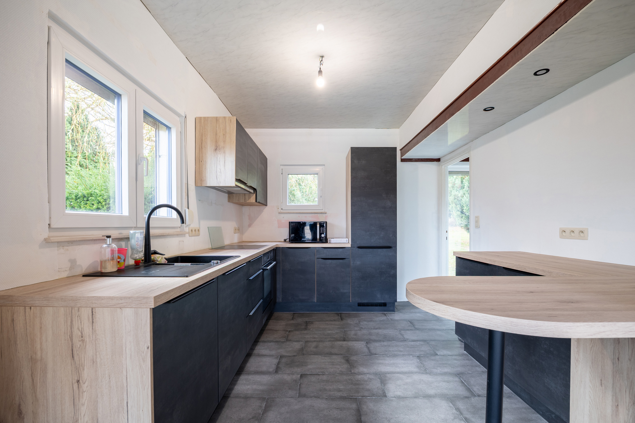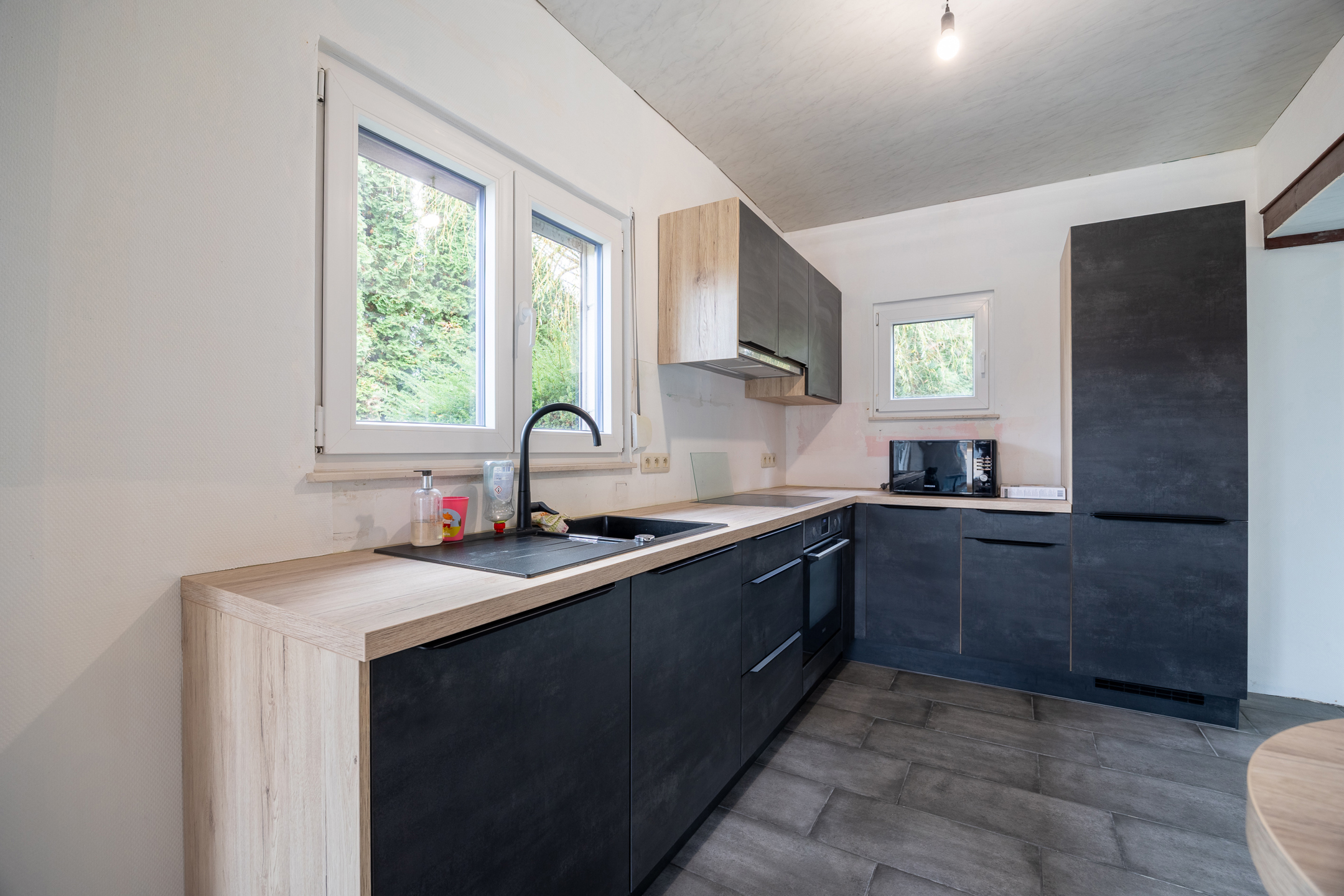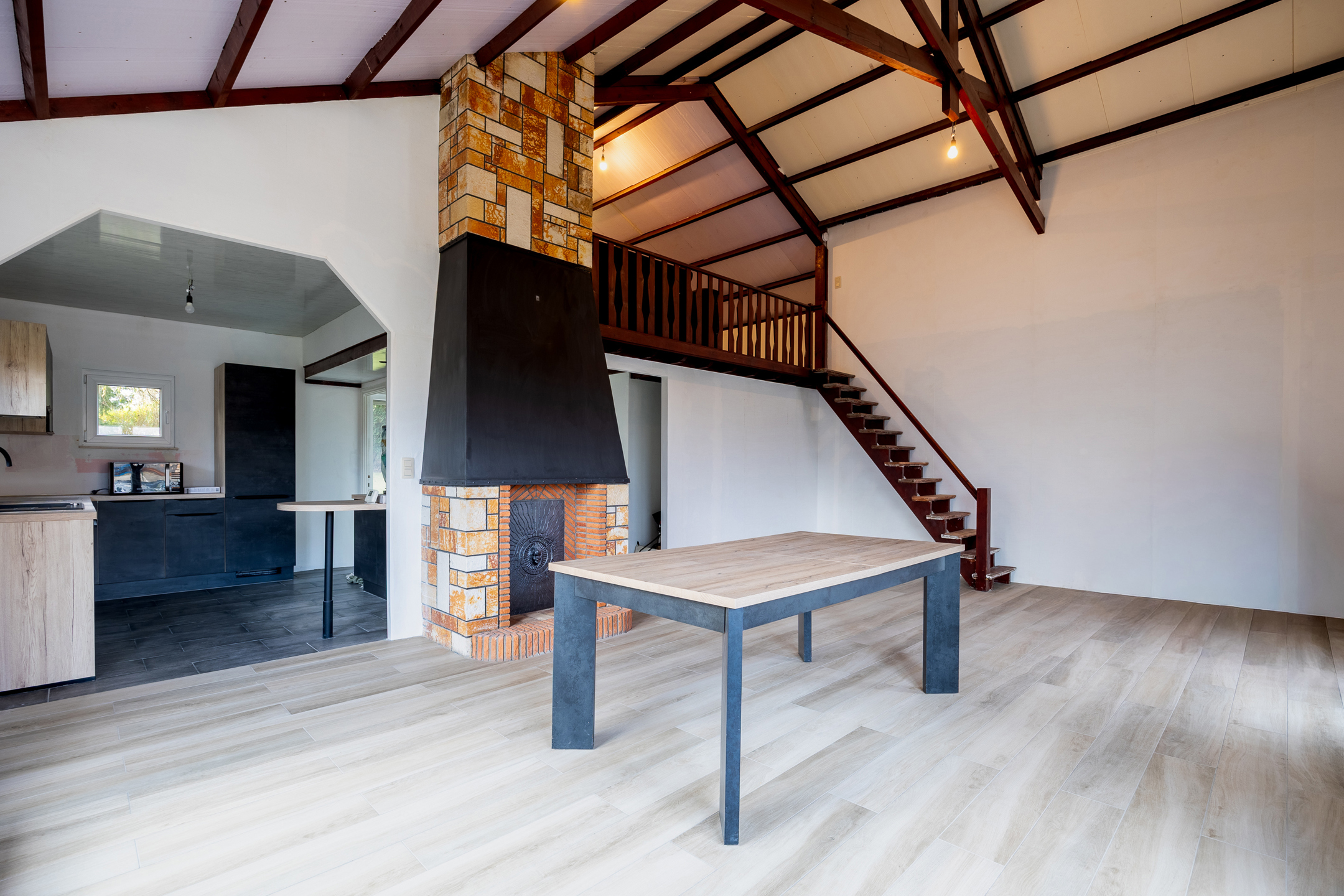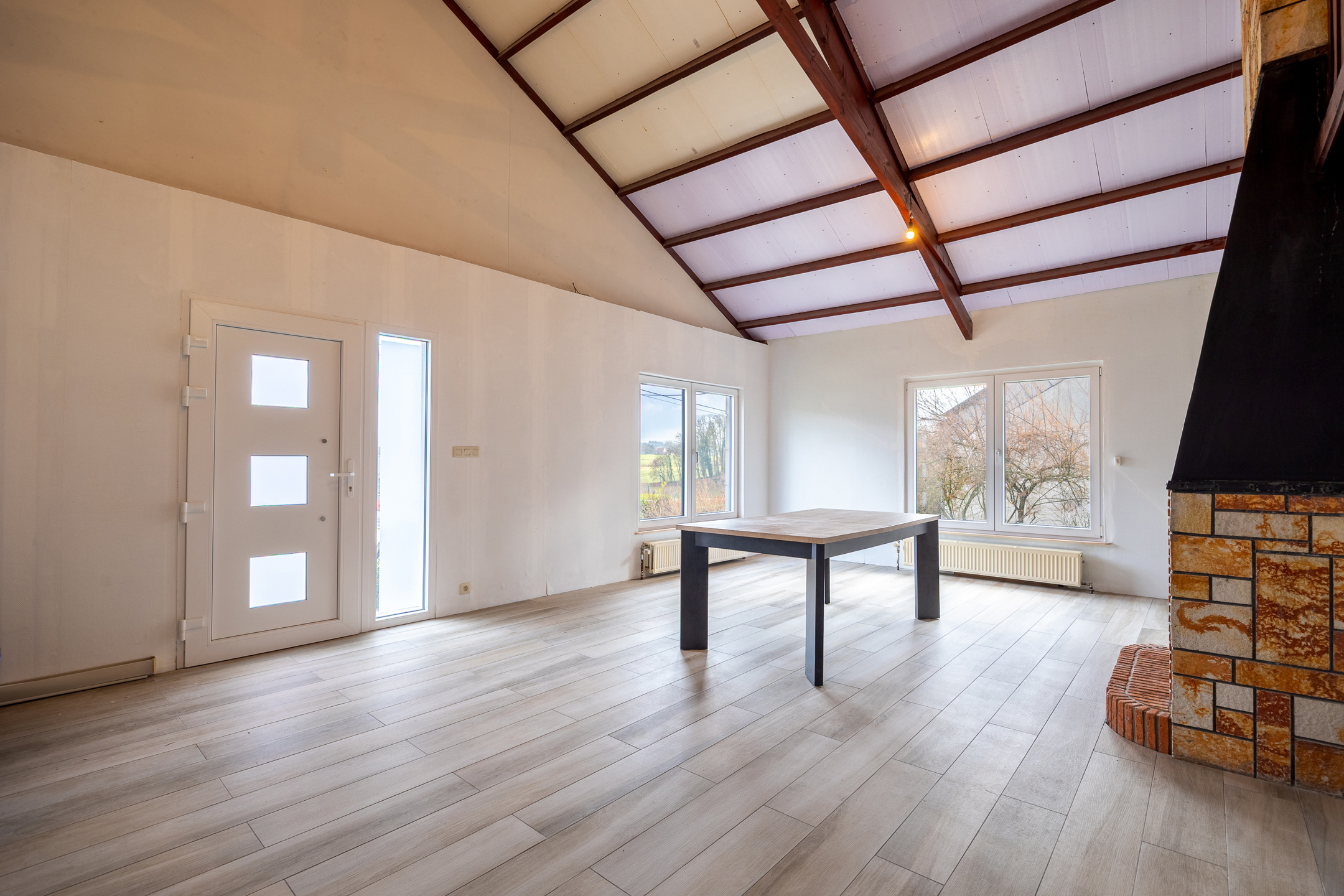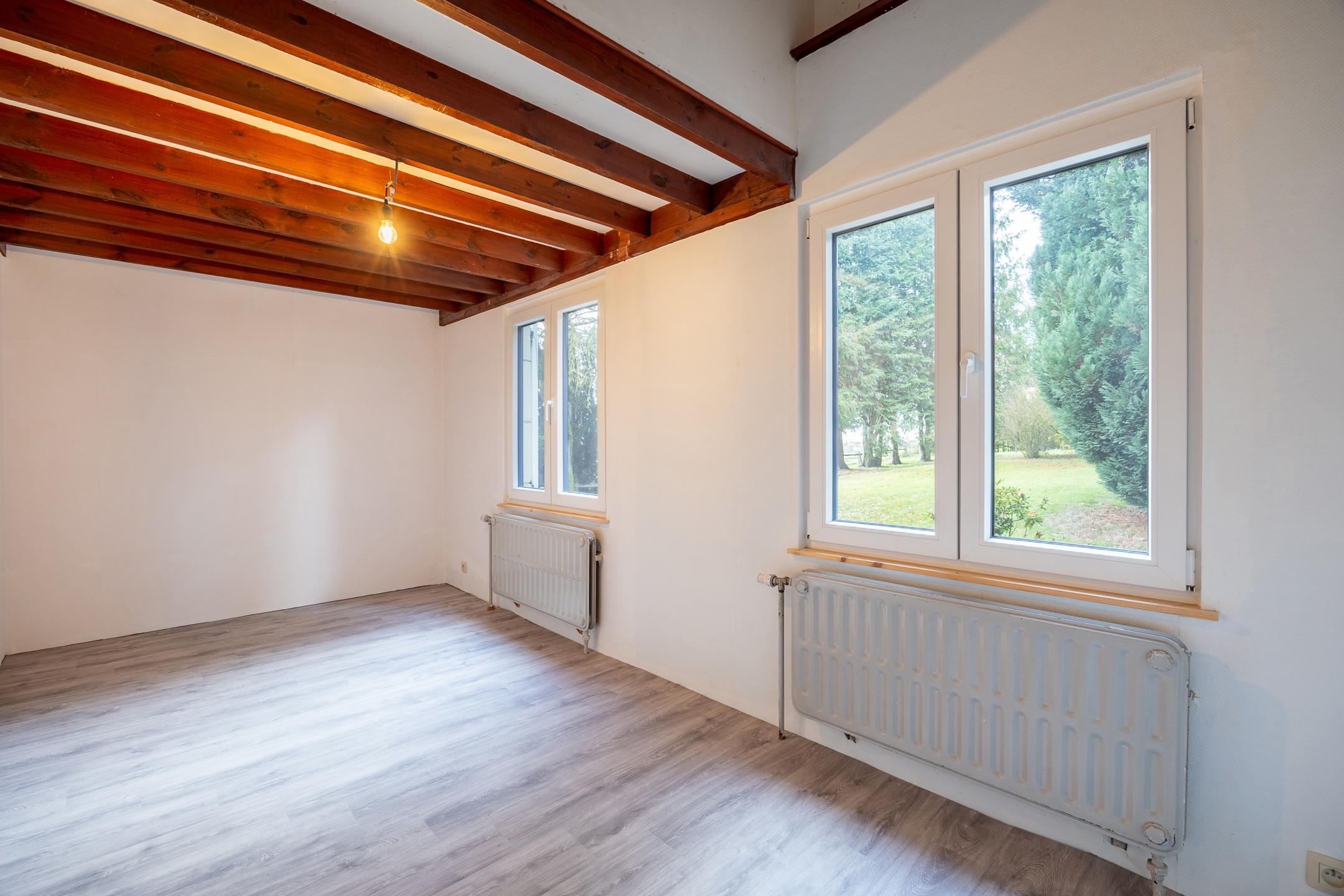 Charming single-story villa located on 11 acres 69 of land with a magnificent wooded garden, comprising a bright dining room with a working fireplace and a mezzanine that can be used as a living room or bedroom, a new fully equipped Ixina kitchen with Zanussi appliances (oven, hood, ceramic hob, fridge and freezer, dishwasher), a hallway leading to two bedrooms with Quick-Step flooring and a bathroom in need of renovation, a ventilated crawl space, sound cellars with laundry room, a garage, a 30 m² west-facing terrace, and benefiting from high-quality technical features such as new electrical wiring with a compliant report, imitation parquet flooring in the living room and kitchen, Schüco double-glazed windows, an oil-fired boiler with a 2,500 L underground tank, a smart electricity meter, and electric shutters on the side. Make an offer starting at €259,000. This is a real gem for a couple looking for space and comfort. Commission of 1.81% including VAT payable by the buyer. The property will be vacant upon completion. For more information or to arrange a viewing, please contact us at 071/11.56.50 or via charleroi@revimmo.be.