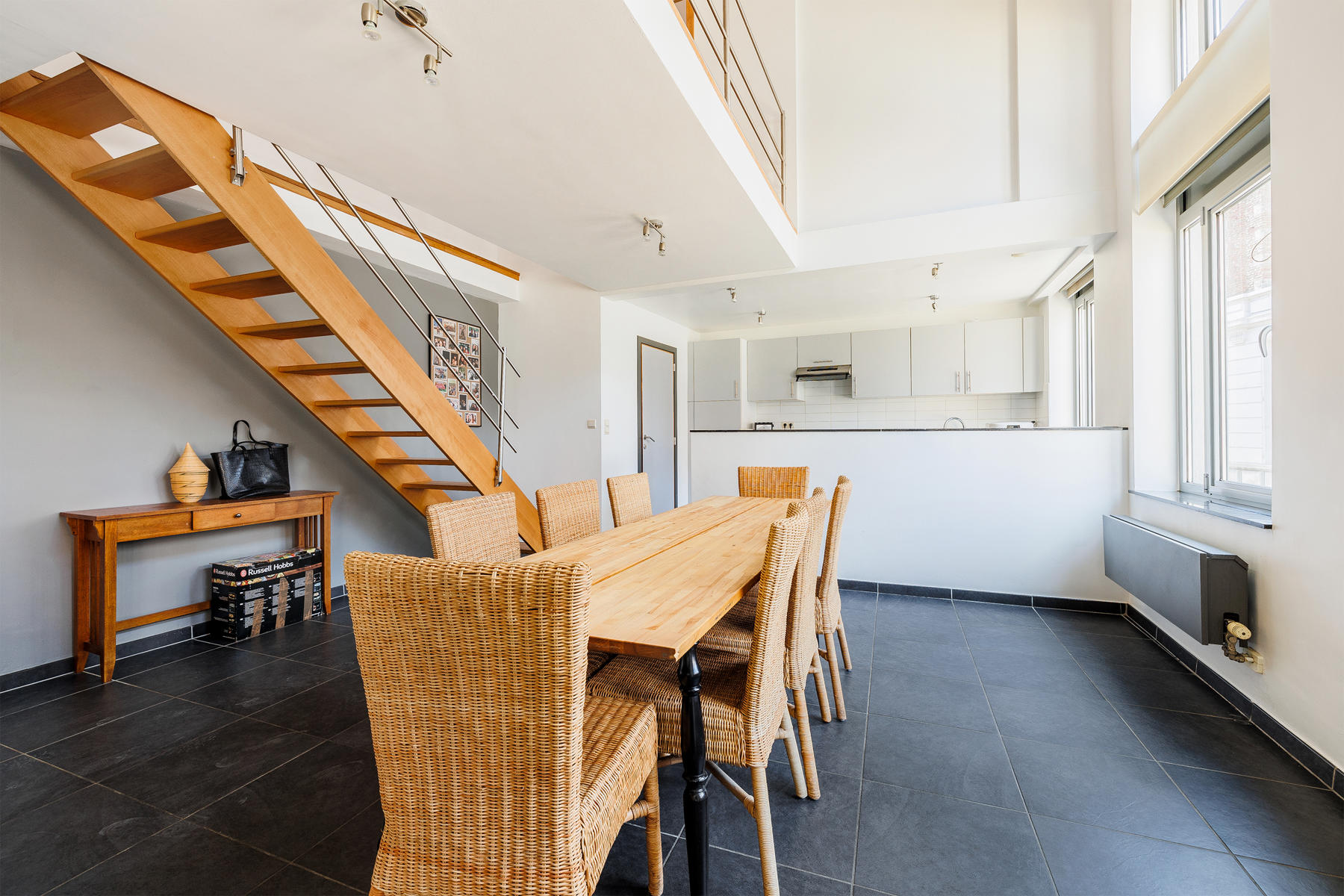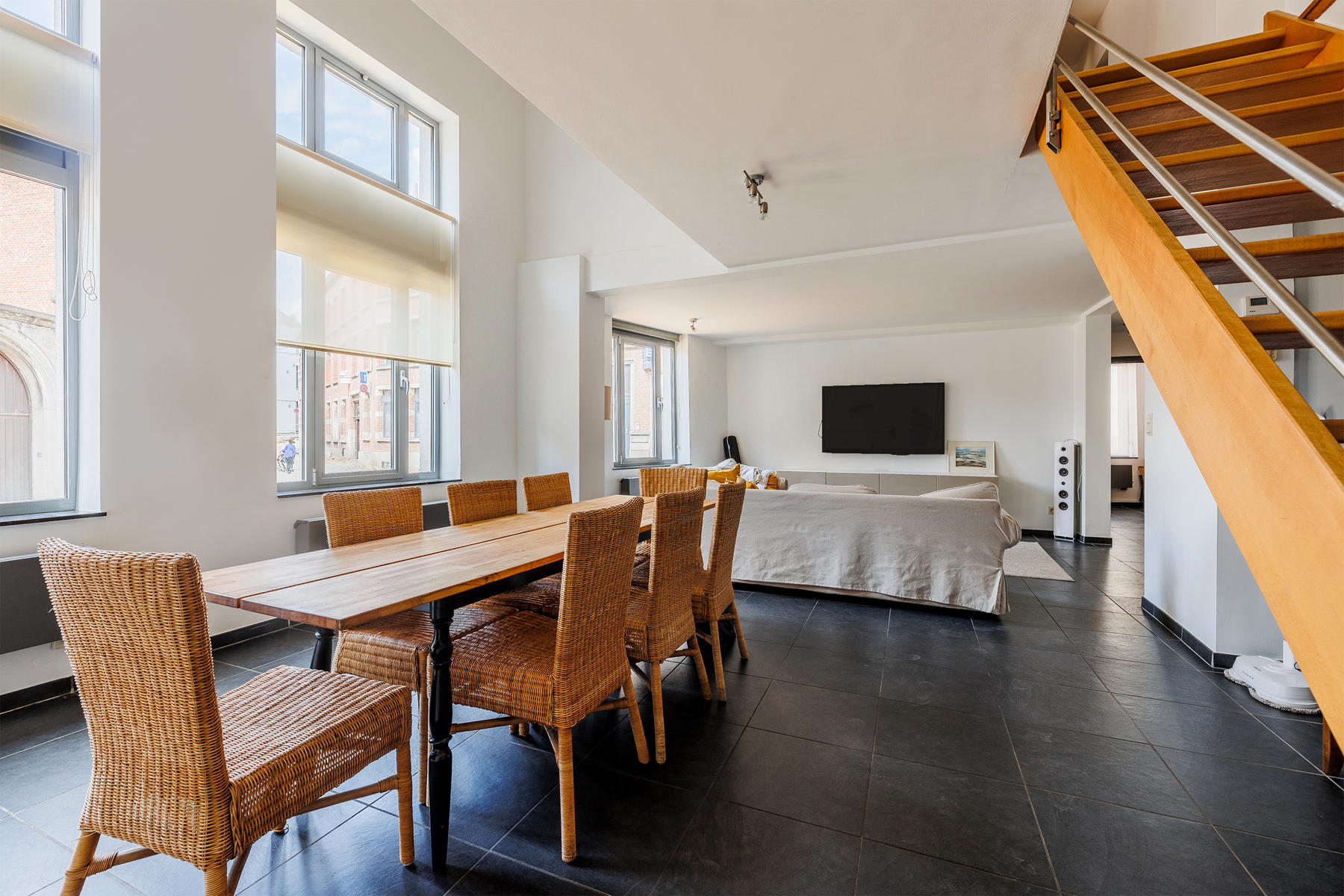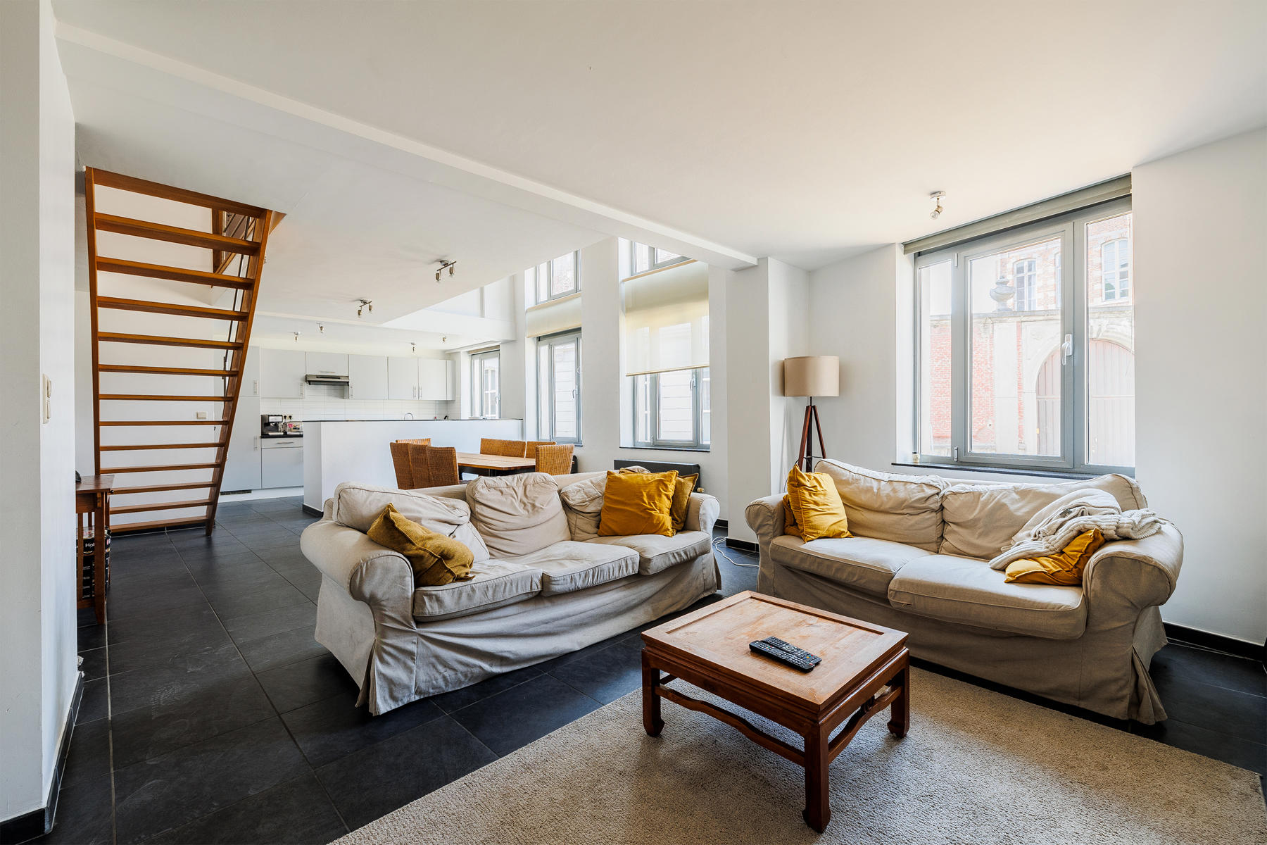 Mons / "Cinq Visages 13", Rêvimmo Mons vous propose un incroyable duplex en centre-ville de Mons. Situé dans un clos privé, sécurisé à proximité de la nouvelle gare et de la collégiale Sainte-Waudru. Le Duplex entièrement meublé (télévision, lits, dressing, machine à laver, séchoir, ... LA TOTALE !) est situé au rez-de-chaussée d'une petite copropriété et est composée : hall d'entrée, vestaire, WC indépendant, deux bureaux, séjour, cuisine full équipée, cellier. 1er étage : hall de nuit, 3 chambres, une salle de douche avec espace machine à laver et séchoir, une salle de bain. Cave. Chauffage central gaz, châssis double vitrage alu, stores sur tous les châssis, VMC double flux, électricité conforme, vidéophone. Disponible le 1 aout 2022. Il est peut-être possible d'emplacements de parkings sécurisés dans le clos (prix et disponibilité sur demande au syndic). Loyer : 1250€ / mois. Infos & visites : Gorbov Ilya - ilya@revimmo.be - Rêvimmo Mons.