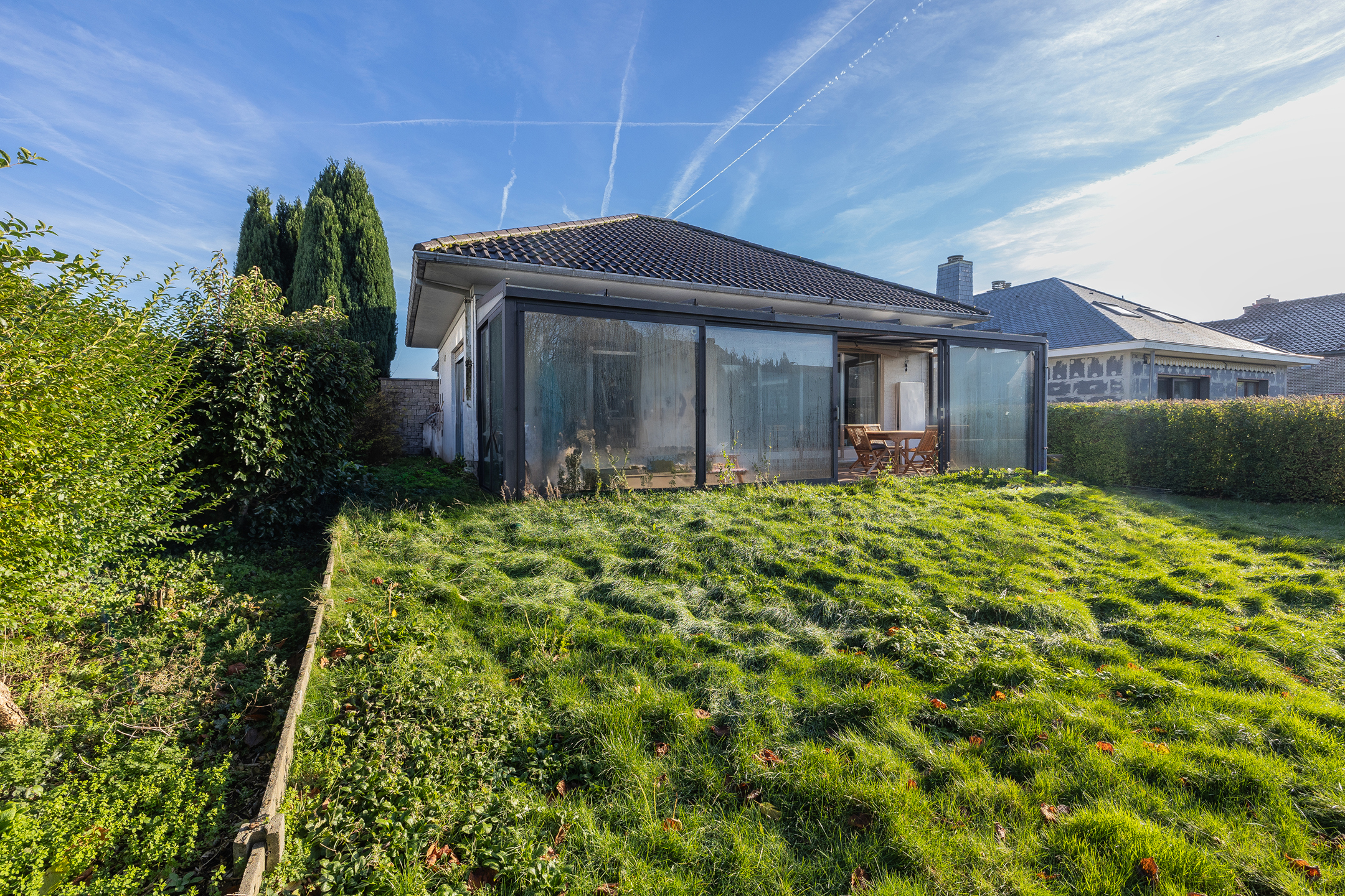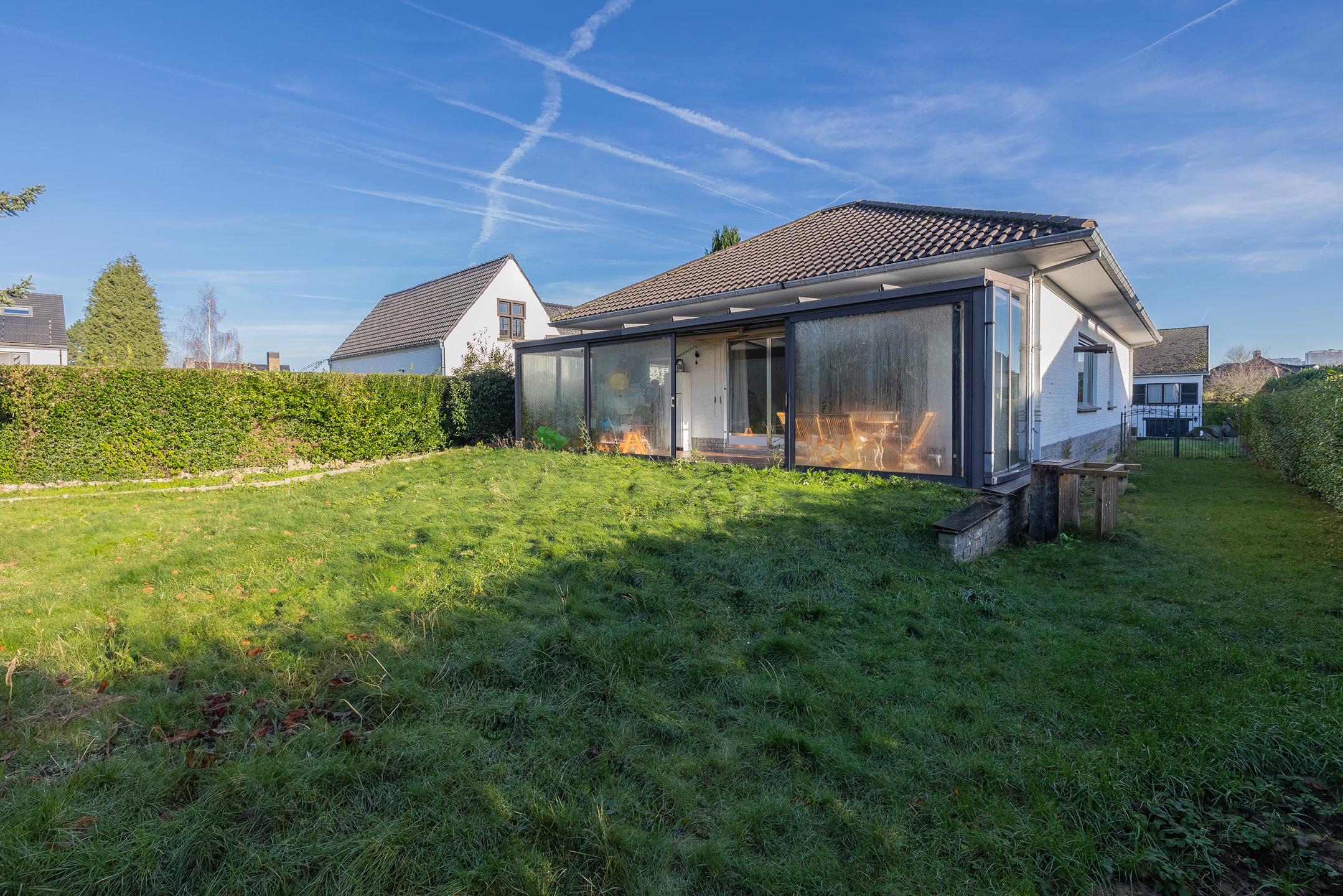 Opportunité unique à Wemmel: Bungalow plein de potentiel! Situé dans un quartier calme près de Bruxelles, ce bungalow sur l’Avenue Capitaine R. Wouters combine tranquillité et accessibilité. À quelques minutes du centre de Wemmel, avec accès rapide à l’E40 et au Ring. Proche des écoles, commerces et transports – idéal pour familles et professionnels! Construit en 1968, il offre 160 m² habitables au rez-de-chaussée: un hall spacieux, séjour lumineux de 60 m² avec cheminée et poêle à pellets, cuisine attenante et véranda de 20 m². Il dispose aussi de trois chambres et une salle de bain. Les combles sont aménageables selon vos besoins. Le sous-sol comprend caves, locaux techniques et garage de 80 m², parfait pour plusieurs voitures ou un atelier. À l’extérieur, jardin verdoyant de 470 m² et large allée. Infos: citerne à mazout souterraine (attestation fournie), véranda en cours de régularisation, PEB label F. 1,5% HTVA à charge de l’acquéreur. Intéressé(e)? Contactez-nous! 02/315.72.72 | flanders@revimmo.be