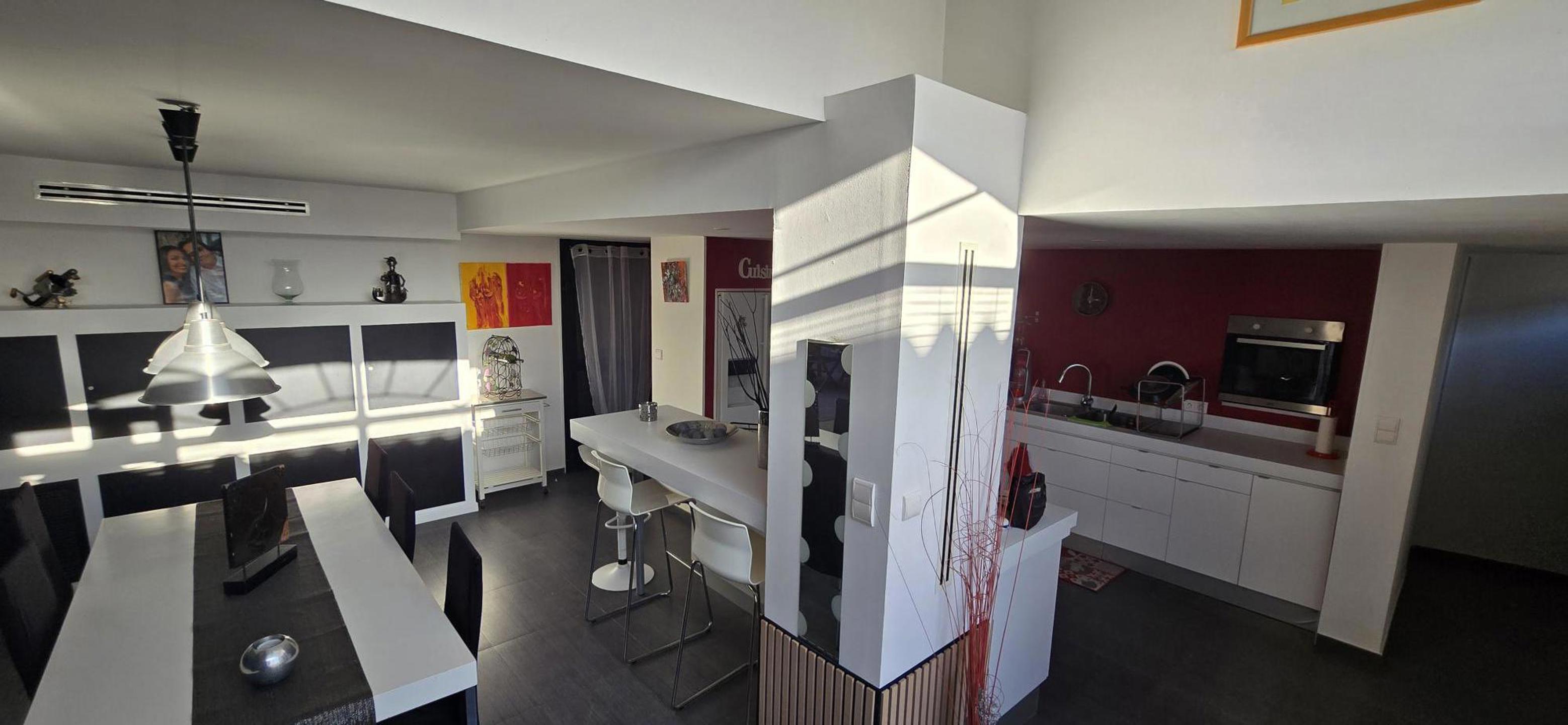 Magnifique maison vendue entièrement meublée et rénovée. Située dans le village de Pomérols (Hérault, Sud de la France) à seulement 5 min des plages de Marseillan et de son port. Ce village est à proximité des commerces, bars, restaurants et des axes routiers. A 5 min de Marseillan, 15 min de Agde, 30 min de Sète et à seulement 30 min de l'aéroport de Béziers. Surface habitable de 127 m² Composition : rez : hall d'entrée, buanderie, grand et lumineux séjour de 52 m², cuisine ouverte (équipée), WC, patio, garage pour une voiture. Etage : hall de nuit, 1 suite parentale de 24 m² avec salle de bain (avec douche à l'italienne et baignoire d'angle), 2 chambres de 12 et 14 m², salle de douche avec wc, pièce supplémentaire de 9 m² (anciennement pièce de musique isolée pour le bruit) pouvant servir de bureau ou de 4ème chambre. Commodités : Châssis DV alu, volets électriques, climatisation réversible, toiture isolée, cumulus électrique de 300 L,... DPE à disposition : 134 kwh/m²/an - C Taxe foncière de +- 1.500 €/an